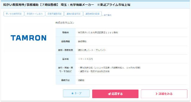 株式会社タムロンの障害者求人(ID:5331)|求人サイト・BABナビ(バブナビ)