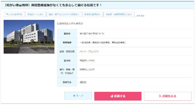 各求人の特徴や勤務条件を確認し、自分に合った仕事を見つけるための参考にしてください。